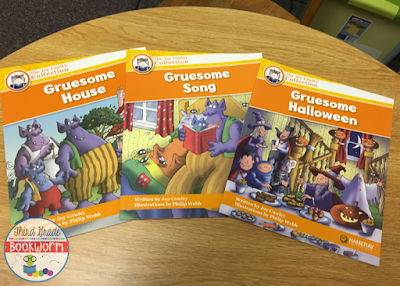 At the end of last week, I asked my struggling reader friend to take a look at the new books I had. I invited him to pick one out for us to work on next week. He doesn’t get excited about much, (Anyone else out there with some *too cool* 4th graders?) but he looked pretty close to happy about the Gruesome series books that I got to try out. He even asked if we could try two of them this week. (Sure!!)