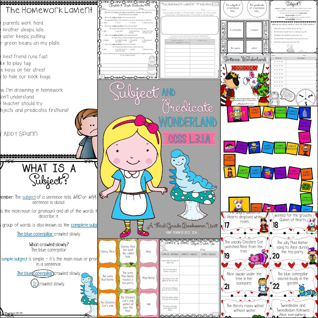 All of these gems are in one of my best sellers: Subjects and Predicates {A Wonderland of Resources}. It’s just gotten a HUGE makeover and is jam-packed full of brand-new interactive notebook pages, anchor charts, practice pages, and a small group game!