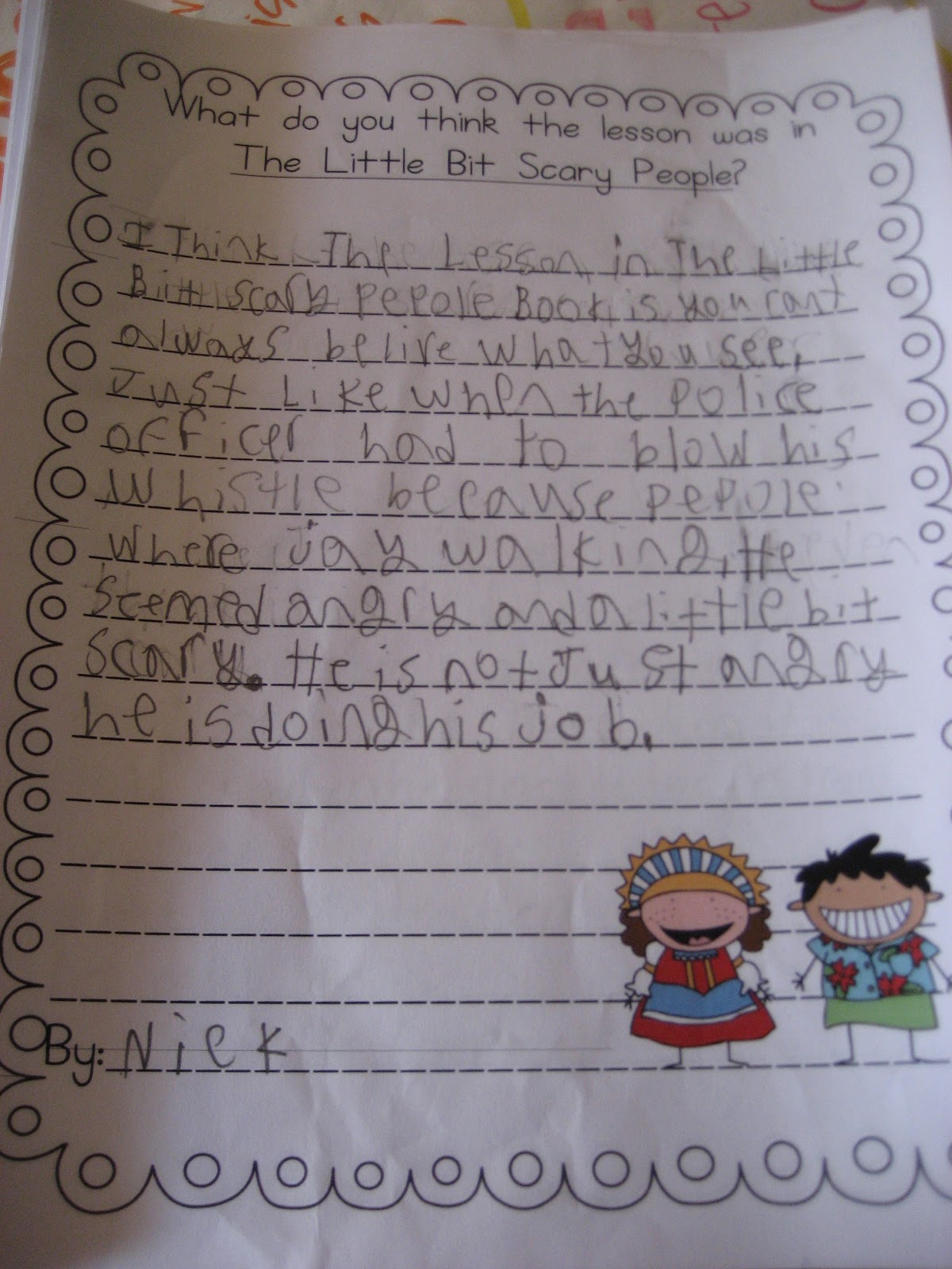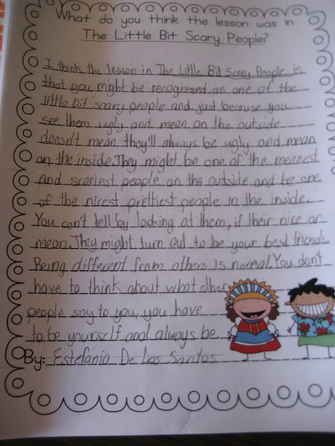 I thought our discussion about theme would take a little longer, but they all agreed (almost immediately) that acceptance was the main theme of the story. We spent a little more time talking about the lesson (message from the author).We came up with several!